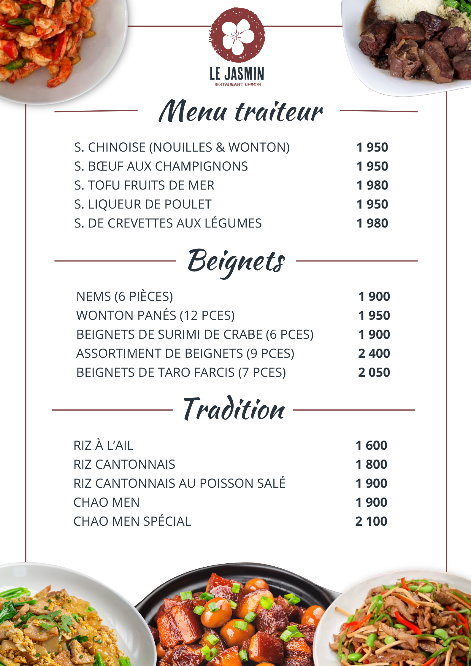 Menu traiteur